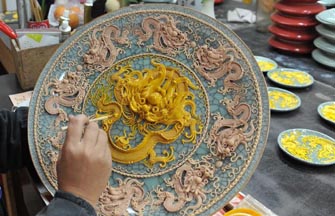 Lacquer thread sculpting is an art in southeast China which uses well-tempered lacquer threads to build decorative patterns. Originated in the mid-17th century, lacquer thread sculpting is listed as one of China's national intangible heritages.