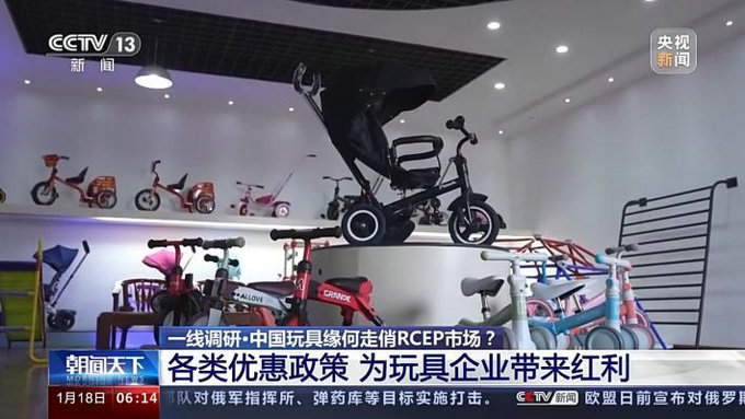 Some toy enterprises mainly focus on the traditional Chinese culture, while others take the initiative to work on theproduct consumption experience. The children's balance bike thatthis factory produced is designed specifically for the growing consumer demand in the RCEP market, and is a hot itemin Indonesia, Malaysia and the Philippines.