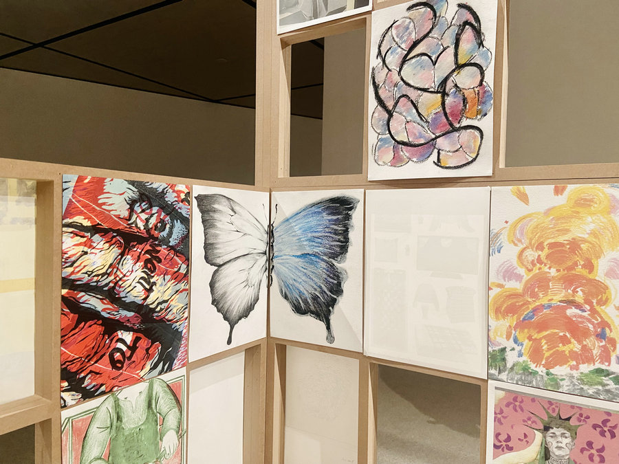 Works by students of the RAFA are currently on show at CAFA Art Museum through Nov 12. They were done in the A4 paper size and are displayed on several wooden frameworks. Young artists were required to complete their works in a brief period of time, and thereafter theiartr output show no intricacy, but a straightforward and yet vigorous style.