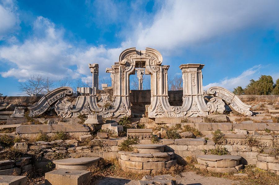 As the royal resort of the Qing Dynasty (1644-1911), Yuanmingyuan, or Old Summer Palace, was widely considered the apex of Chinese gardening art. It was burned and rooted by invading Anglo-French forces in 1860.
