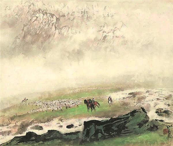He first visited the region in the early 1940s, when the outbreak of the War of Resistance Against Japanese Aggression (1931-45) forced many to flee to southwestern China. Among the refugees were artists who journeyed even further westward to areas inhabited by a variety of ethnic groups, where they captured enthralling landscapes and cultures. Great Bells Beyond the Great Wall, a long-term exhibition ongoing at the Xinjiang Art Museum, in Urumqi, Xinjiang Uygur autonomous region, reviews Guan's westward voyage, during which he painted the northwest and its people, and copied the murals at the Mogao Caves in Dunhuang, Gansu province.