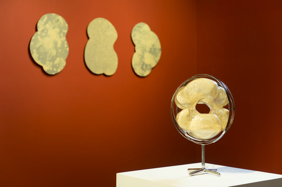 The exhibition features the fruits of Brechignac's two-month residency in Beijing, showcasing seven paintings and two sculptures. [Photo provided to China Daily]