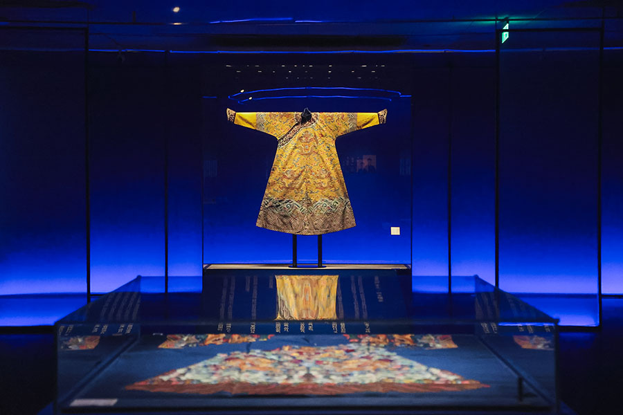 Robes, attires and accessories with embroideries once adored Qing Dynasty's royal members are on show. [Photo provided to China Daily]